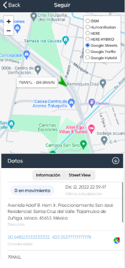 Conoce la posición exacta de cada vehículo con actualizaciones precisas y visualización en mapas de alta calidad.
